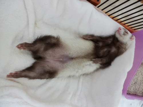 JUGEMテーマ:フェレット 銀ちゃん 呼ぶと、どこからか出てきてくれます なーにー?って顔で わりと律儀な子です。 でも、この日は 僕眠い… 反応してくれたものの、睡魔に勝てず