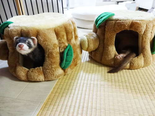 JUGEMテーマ:フェレット いつも一緒 右側の切り株は虎ちゃん 脚としっぽだけ見えてます。 これはオヤツを食べた後の光景 そして、人間が遊んでくれるのを待っている様子 ダブルでいつも行動ww