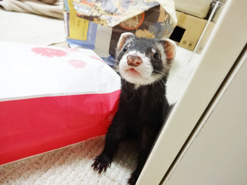 JUGEMテーマ:フェレット 熊ちゃんは、ビニールが大好き過ぎて食べてしまうので うちはビニール袋で遊ばせるのは禁止です。 (前に食べたビニールはちゃんと出てきました!) 誤食してからというもの、今まで以上に気をつけてます。 コンビニの袋とか、遊ばせるのはちょうど良かったんですがね、、 虎ちゃんだけの時はコンビニ袋は遊び道具だったんですが 今は熊ちゃんの誤食が怖いので全面禁止となりました。 ですので、我が家ではもっぱら紙袋で遊ば...