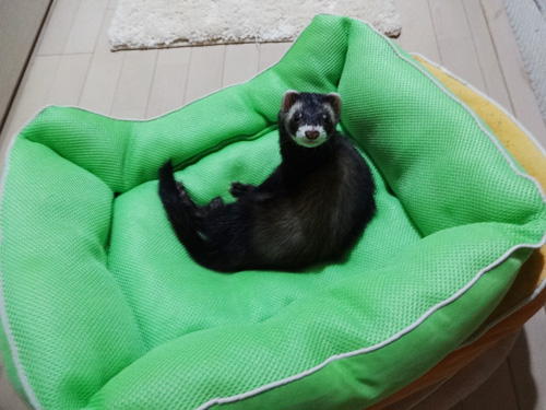 JUGEMテーマ:フェレット 熊ちゃん... それは、これからしまおうと 置いておいたベッドです。。。 少し目を離すとコレだ〜 油断も隙もない! 気に入ったみたいなので、ベッドをつみあげたまま部屋に置いておくことにしました。。