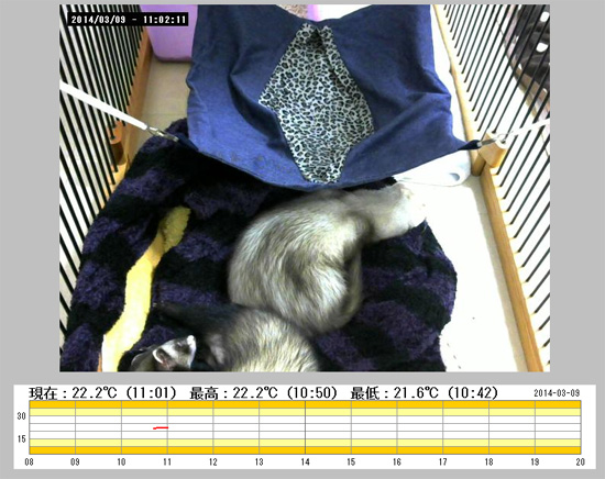 JUGEMテーマ:フェレット 昔 だんなさんが一人暮らしをしている時 不在時のイタチの様子が気になるということで イタチ監視用のカメラを設置していたのです 昔はWEBに公開していたのですが、時代は進化しWEBカメラにWEBサーバーが搭載されているため 公開せずとも、イタチカメラが設置できるようになりました! 3月中旬から私が仕事に行くので、その間イタチの様子が気になる。。。 ってことで、ま ただんなさんがイタチカメラ設置してくれました! 今回のイタチカメ...