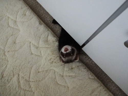 JUGEMテーマ:フェレット 家具の下から私を凝視する熊ちゃん… なでなでを要求していた模様(=゚ω゚)ノ” 甘えん坊さん、カワイイ