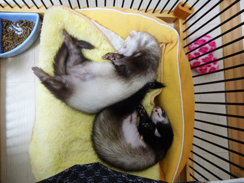 JUGEMテーマ:フェレット 少し暖かくなるとこんな感じに足をおっぴろげーで寝る虎ちゃん でっぷりお腹がたまらんです 立派なマヨネーズ型( •̀∀•́ )✧