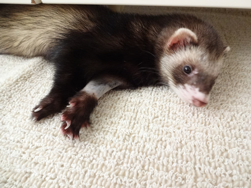 JUGEMテーマ:フェレット 熊ちゃんの前足の毛の生え方ww なんだか面白いw ヒゲ?みたい!? お腹の方はまだまだ寒そうです(;´Д`)