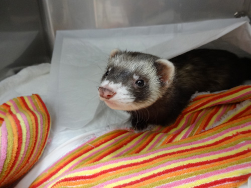 JUGEMテーマ:フェレット 通院でお疲れの熊ちゃん 院長先生にとても褒められたキレイな傷口 これで体重が増えてくれれば言うことなし!