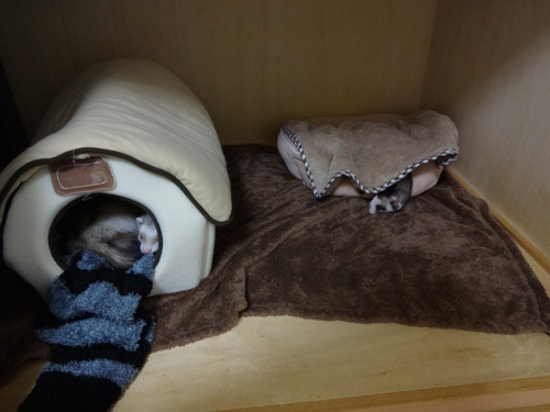 JUGEMテーマ:フェレット 無事今日退院できましたー! 思いのほか病院でくつろいでいた様子 病院でもらったご飯をモリモリ食べたそうです。 家に帰ってからも、立派なンコ! そして、それぞれの寝床で寝る虎熊 帰ってきて早々に一緒に遊んで疲れた虎ちゃん 若かったのが幸いして、本当に回復が早かった 今にして思えば病院がお正月休みの時にこの状態にならなくて不幸中の幸いでした… ちなみに、病院で見習い獣医さんにも...