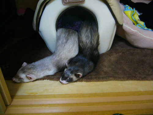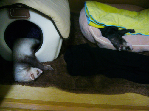 JUGEMテーマ:フェレット なんか最近すごくツイてない気がします… こんな時はイタチに癒してもらうのが一番。。 ふと見ると シンクロ! ちょっと写真暗いですが…。 はーーーっ 天国の恋 でも見て爆笑しよう。。