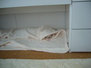 JUGEMテーマ:フェレット 粗相防止で置いていた毛布 イタチに人気です! 遊ぶために置いたわけではないのですが… 虎熊は ここでよく遊びます!