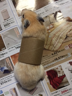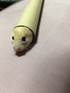 テーブルクロスを替えたら 巻きついていた長い筒が残り、 ハムたんが入れそうな気が。 無理っぽい気もするけど パイプにするすると入る位なので お掃除の時に試してみました。 嫌がるだろうという予想に反して… 難なく入ったするっと出た 長〜〜いハムたん 置いとくと邪魔だけどハムたんの為に 置いとこう。 JUGEMテーマ:ハムスター