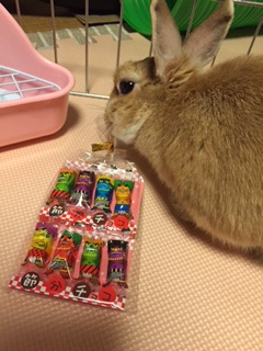 最近うさたんのおしりがさほど汚れなくなったので、 脚湯の回数が激減しております。 お互いハッピッピ ラビクッキーとかやめたら少し痩せたので そのせい そのかわりしっこの御粗相があるので 面倒だけど、脚湯に比ぶれば楽ですぢゃ。 ぬくい日はしないので、 やっぱ寒いし面倒だからそこでしちゃうのかなぁ。 ずぼらなウサギに胸キュン 自分もズボラでやる気が出ないのですよ。 もうすぐ春か… 今年の節分は豆売り場に豆に混ざって 売っていた節分チョコにしてみました。 ハムがいないと豆なんて味方ない...
