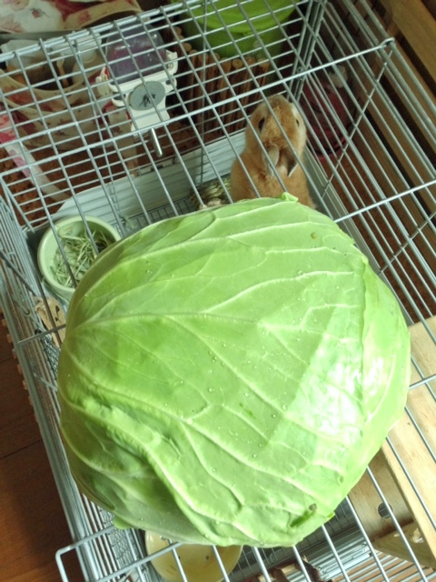 飼い主です。 いただきものの、大きなキャベツ。 この日の夕飯はキャベツと豚肉のワイン煮込みにしました。 一度で使いきらなかった分は冷蔵庫へ・・・と、その前に。 芯のところを薄く切って(写真左)、天日干しにします(写真右)。 いいお天気だったので、二日でぱりぱりに。 はなのおやつ、できあがり。 「けっこうおいしいんだよ。」 以前にも試しましたが、うちのうさぎは甘い芯のところしか食べません。 昔、小学校のうさぎは、外側の緑の葉っぱもちゃんと食べてたような・・・。 うーむ、わがままっ...