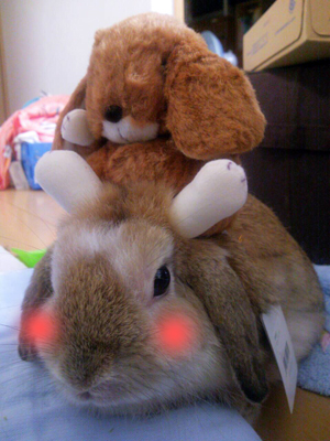 ぺちさんの実家に養子にいった「ちょこ」ちゃん(オス) 小さい時は一番内気だったのに今は暴れん坊らしいv みくりさん家の養子にいった「ここあ」ちゃん(オス) 何故同じ兄弟でこんなに華奢な骨格なのか(比較くっきー) 2匹とも「くっきー」の兄弟で「ぽちママ」と「ひしょかパパ」の子供。 ちょこちゃんの方がちょっと毛色が明るいのが見分けポイント。 可愛いなー JUGEMテーマ:ウサギ