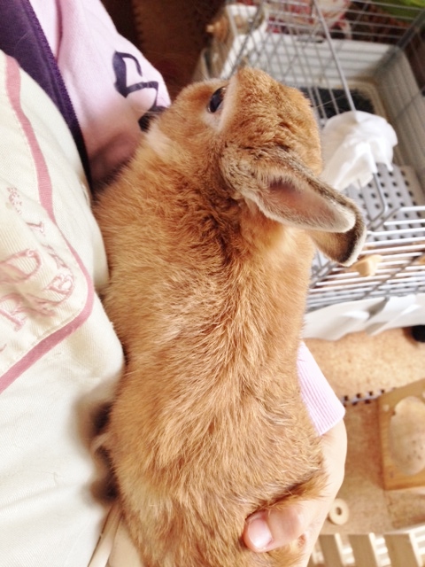 2014/4/29 通称肉の日。我が家にホーランドロップの空(くう)がやってきました☆ずっとうさぎさんを飼いたくって、念願の相棒です笑名古屋のうさぎ専門店にパパ・ママと3人でなぜか行くことになり、わたしよりパパのほうが興味深々でした・・・wwくうを見た瞬間に即決定!一目ぼれです!!えさももりもり食べ、環境が変わっても好奇心旺盛で元気そのもの・・すこしは怖がってもいいんじゃないかと思うんですが、まったくそのような反応がないですwwおおきく元気に育ってね☆