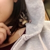 GEMテーマ:フクロモモンガ この子は家族唯一のシマシマモモンガの リズちゃんです❤ 肩の上で大好きなリンゴをシャシシャリ 上手にお座りしてます ( ›◡‹ )