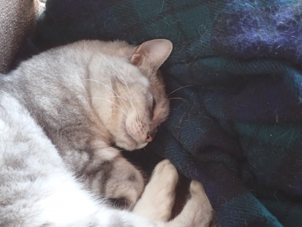 洗おうと思ってつくねておいた、 フリースのひざかけ。 そこに頭を突っ込んで寝る猫。 無視される猫ベッド。 そして、 カメラには冷凍視線。 いいのよ。 洗濯すべきものは すぐ洗濯かごに入れろって話だし。 カメラを嫌うのは、猫の自由だし。 ↓久しぶりに庭の写真です。↓