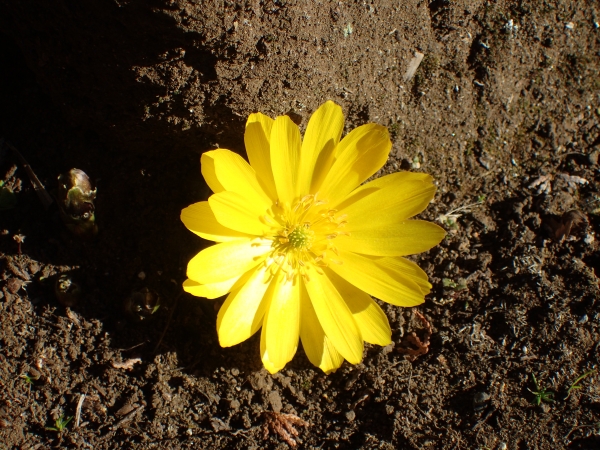 きょうは、 お約束した「きこり」のお話を。 地面から唐突にお日さまが! フクジュソウの咲く季節になりました。 見上げれば、ロウバイも満開。 参加している地元の里山保全団体は、 冬と春のあいだ、 ちょうど今の時期に 炭焼きをしています。 炭窯は常設ですが、 煙突は、そのつど立てます。 長いブリキのパイプを継いで、 立ち木の枝に渡すのです。 斜めに渡した煙突からは 冷やされた水蒸気が落ちてきます。 それを受けて、木酢...