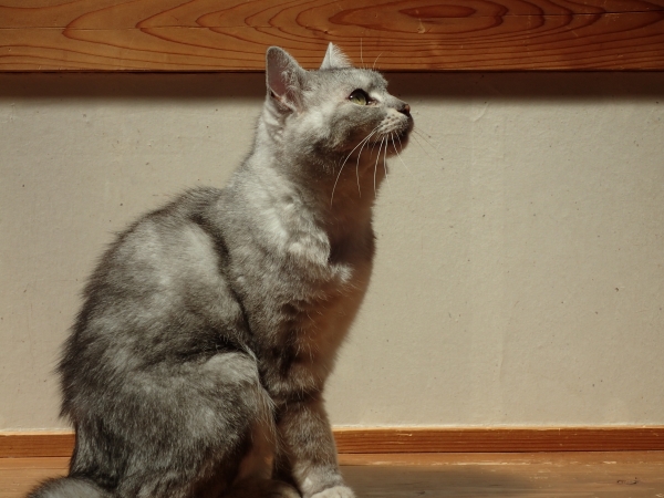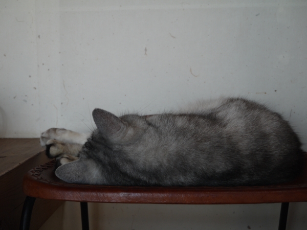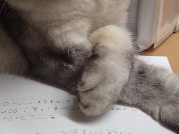 バッテン座り。 飼い主的には 花丸、二重丸のポーズ♪ * おまけは、 台風対策時のしごと部屋。 読み猫さんは、泰然自若。 その翌日。 外しておいた網戸をつけ直して 部屋に戻ると、 お客さんが来ていました。 アオバハゴロモさん。 あの暴風雨をよく凌いだねえ。 ** 鳥たちは被害甚大だったようです。 落鳥がかなりあったもよう。 外暮らしの猫たちも、きっと...... 無事だったことの感謝を、形にする方...