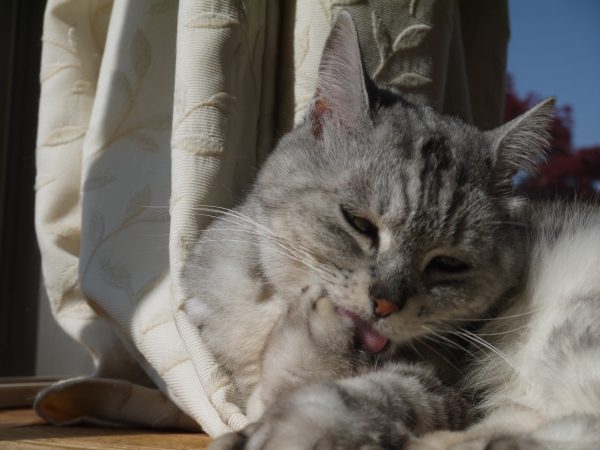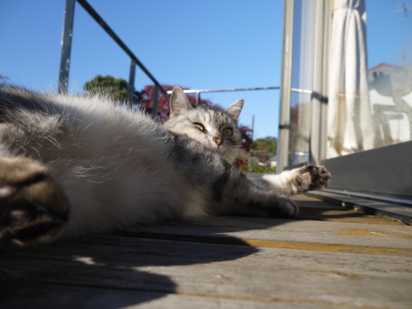 霜の降りた朝。 ぐんぐん青空が広がって、 大気に冬の光が満ちる。 にょっほい♪ ぱやぱやの差し毛に、朝日が光る。 たっぷりお日さまを吸って――、 灰色なまこは、幸せのカタマリ。 かたや黒っぽい姐さん、グリコ。 ただいまの体重、3.3キロ! 最盛期にはかるく4キロを越えていたことを思えばまだまだですが、 この春先、まるで旅立ちの覚悟を決めたかのように絶食し、 2.9キロまで落...