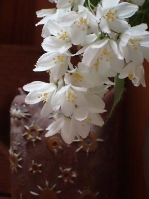 去年、わが家に迎えたヒメウツギ。 無事に根付いて、きれいな花を見せてくれました。 自身の重みで地面についてしまった枝があったので、 雨が降り出す前に、切って花瓶に活けました。 つくづく、よい花ですなあ。 北庭も、いろいろ動きが出てきました。 左から、アオキの新葉。 ウリの鼻先にギボウシとアジュガ。 冬のあいだは、ほぼ終日ストーブのある二階で過ごしていたのですが、 暖かくなってきてから、おばは一階の(本来の)しごと部屋に復帰。 灰色しまし...