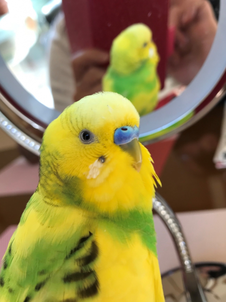 我が家の愛するペットであり、エントリーのマスコットバードでもあるセキセイインコの“ショータロー”の一日を紹介します(^^♪ 朝は7時から7時半に起床♫ リビングの隣の和室にゲージを置いているので、静かに襖戸を開けて、『翔ちゃん💛おはよう💛』と言いながら被せている布を取ると、『ピー(おはよう)』と返してきます。 水と餌を交換している間に、ショータローはすぐに気に入りの鏡の前で“イケメン”の確認とばかりに全身チェック☑ ...