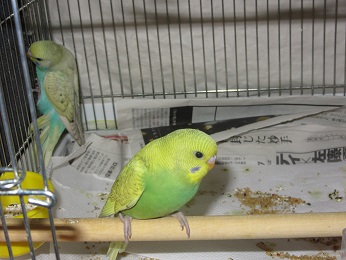 JUGEMテーマ:セキセイインコ お元気ですか。しろです。 気分転換に止まり木にとまってます。 奥にいるのは、みちるです。 お母さんと一緒だね。