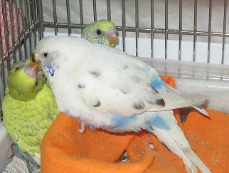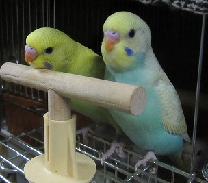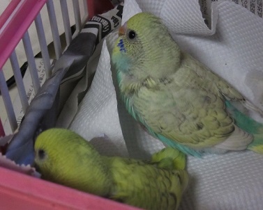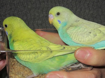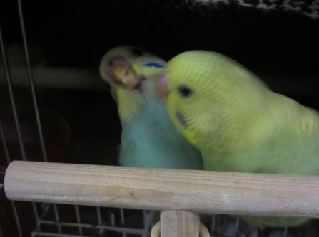 JUGEMテーマ:セキセイインコ 「ちるちゃん(青いインコ)遊んでー 」by みちるより(黄色いインコ) 「んっ。ちるです。ひとが怖くなくなり顔をいじって遊んでもらってます。」 「あ。私、卵最近産みました。」