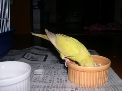 JUGEMテーマ:セキセイインコ ご飯パクパク。 葉っぱを食べて、ハイラジで遊んで。 羽繕いして。 今日も一日お疲れ様。ありがとう。