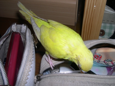 JUGEMテーマ:セキセイインコ シールを齧って。 ストラップを齧って。 紙を齧って。 サンドイッチに乗って。 つたって降りて遊んで。 掃除中のご飯を食べています。