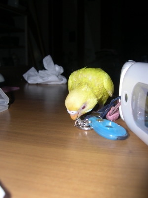 JUGEMテーマ:セキセイインコ ストラップで。 ティッシュを噛む。 ノートパソコンの上。 手の上。 ノートパソコンの上。 カーテンレールの上。 また濡れたね。 パクリ。 パクリ。