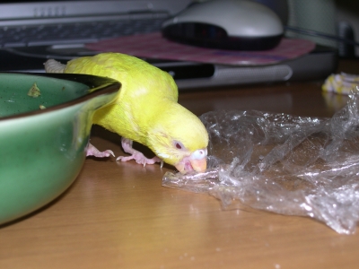 JUGEMテーマ:セキセイインコ ラップで遊ぶ。 腰に摑まって。 ポテチ。 蜜柑。