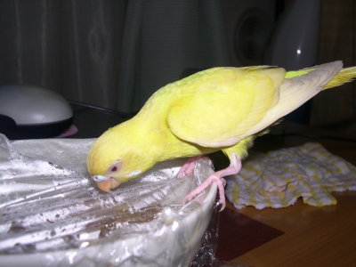 JUGEMテーマ:セキセイインコ ラップの上。 スリスリ。