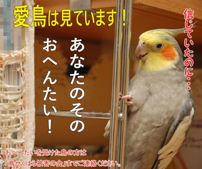JUGEMテーマ:鳥が好き! #鳥せくはら被害の会ポスター そらおくんへぽちっと応援頂けると嬉しいです にほんブログ村 「オカメインコのそらおくん」@okamesorao きしかん@kishikansora