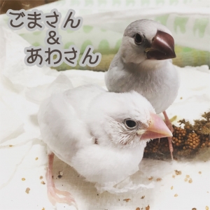 まめさんが亡くなってから、毎晩のように泣く私と、 すっかり動く気を無くしてしまったきびさんが残されました。 白玉さんが遊びに来てくれたり、 病院で他の文鳥さんの声を聞いたりして きびさんは少し元気を取り戻しはじめたようですが、 やっぱり、まめさんなしで1羽1人での生活は難しく、 思い切って新入りさんをお迎えすることにしました。 シルバー文鳥のごまさんと白文鳥のあわさんです。 むぎさん、まめさん、きびさん…に続く雑穀コンビにしま...