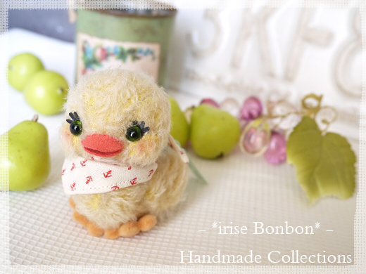 JUGEMテーマ:愛する小鳥たちJUGEMテーマ:小鳥グッズ・小鳥モチーフJUGEMテーマ:鳥が好き!JUGEMテーマ:愛しのテディベア!JUGEMテーマ:ソーイング♪ *irise Bonbon*さんの、かわいいぬいぐるみちゃんですその名も・・「しもぶくれがあこちゃん」Design / *irise Bonbon*Size / 体長7.5cm 顔縦4cm 幅5cm座高11.5cmMaterial / モヘヤ(ヤギの毛) グラスアイぬいぐるみを作るお仕事をされていたirise Bonbonさんが製作。高級資材を使って作られた、レトロデザインのぬいぐるみ。ぷっくりほっぺたが、かわいい!あんよも、...