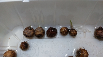 JUGEMテーマ:農業 水につけてから1週間。 タイガーナッツの芽が出ました。 小さいものから最初に出た。 大きさは発芽に関係ないのかな。 芽と根は別の場所から出ると思ったら、同じ場所から出るのね。 芋みたい。 早くプランターに植えてあげよう。