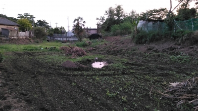 JUGEMテーマ:農業 義父が手に入れた、家に隣接する土地です。 (奥のコンクリートの塀のところまで) 右側の高いほうに家があります。 見えている網は、鶏の運動場の仕切りです。 左側は別の方の土地で、我が家の土地と同じくらい高いですが 田んぼをやっています。 この土地には高い草木は生えていません。 雨が降ったせいもあったり、隣の田んぼに水が入るからでしょうか。 土地が低いので、中のほうに入ると足を取られるほど沈みます。 冬はそんなにはならないです。 ...