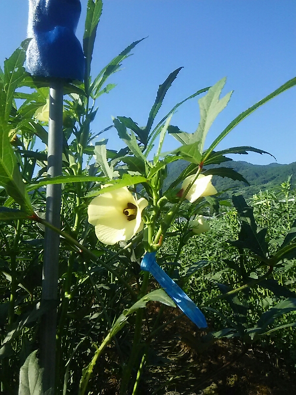 お久しぶりです 毎日暑く、オクラの値段も大分下がりやる気低下気味ですが 毎朝日の出から収穫しています。 今日は、オクラの開花から収穫までの記録をとりたいと思います。 7月8日 オクラの株に2つ花が咲いたのでこの株で記録をとりたいと思います。 翌日蕾墜ち実がなって入ました 2日目 3日目 4日目 上の実は5cm 下の実は5.7cmに成長しています 5日目 上の実が7.2cm 下の実が8cmで 農協の規格では8〜10cmでMの規格なので...