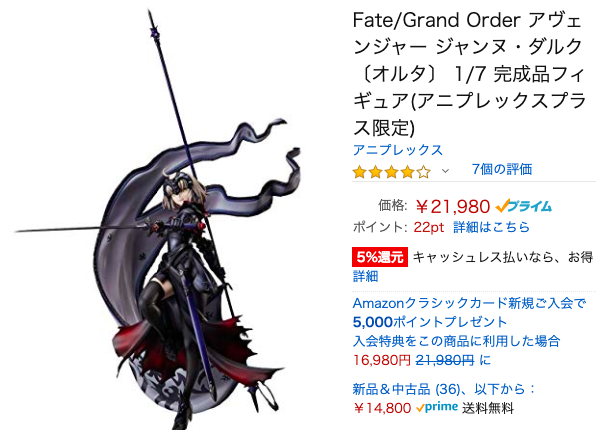 高浪ひろしのフィギュアBLOGです。 お世話になります。 Fateのフィギュアがアマゾンで相場が高騰中です! こちらの商品です! ↓ 商品名: アニプレックス Fate/Grand Orde アヴェンジャー ジャンヌ・ダルク オルタ 1/7スケール アマゾンの相場額:21980円 定価(仕入額):17000円 差額:4980円 JAN:4534530822574 24000円前後でもAmazonで売れています。 ソフマップ、ドン・キホーテで売っています。 ...