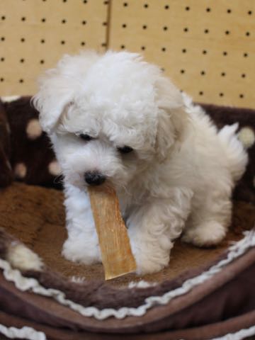 《 七面鳥すじ 》はもう楽勝で噛み終わるので、硬さをワンランク上げ、《 牛あきれすスジ 》に。 むーにー、やりよる。 《 ビションフリーゼ 》 お誕生日:2018年3月11日 性別 :おとこのこ カラー:ホワイト 血統:父犬AMチャンピオン ビションフリーゼのこいぬは素敵なご家族のお家に迎えられることが決まりました。 (2018.5.2 Wednesday) ビションフリーゼのこいぬは、5月初旬にお家に迎えられる予定です。 それまで、お店でいっぱいいっぱい一緒に遊ぼうと思います。 一生の家族の元へ送り出...