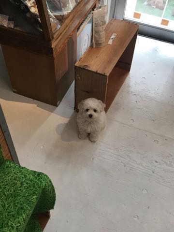 チラッ おやつが欲しいむーにー。 チラ見がかわいい。 《 ビションフリーゼ 》 お誕生日:2018年3月11日 性別 :おとこのこ カラー:ホワイト 血統:父犬AMチャンピオン ビションフリーゼのこいぬは素敵なご家族のお家に迎えられることが決まりました。 (2018.5.2 Wednesday) ビションフリーゼのこいぬは、5月初旬にお家に迎えられる予定です。 それまで、お店でいっぱいいっぱい一緒に遊ぼうと思います。 一生の家族の元へ送り出すその日まで…