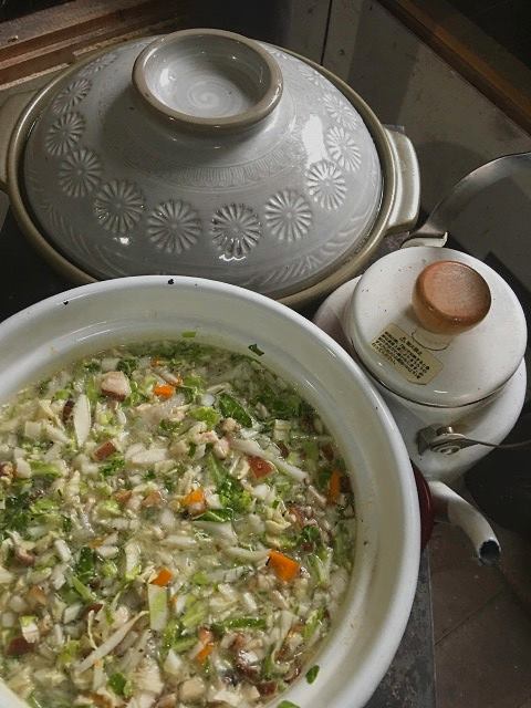 JUGEMテーマ:猫のご飯・おやつ 今日は主人の仕事の手伝いでした。 とっても久しぶりにお世話になるお客様、懐かしく感じました。 感謝です。ありがとうございます。 猫にてづくりごはん。続いてます♪ 薪ストーブの上には土鍋で玄米を炊いて、手前の鍋には鶏肉とかを細かく切って 煮込んでいます。 大根、シイタケ、キャベツ 白菜 人参 などなど。。。 玄米ごはんと煮込んだ鍋のものと食べなれた猫缶とカリカリと鰹節を細かくしたものを混ぜ混ぜして、 カリカリがふやけた頃に提供します。 葉っぱん、これ...