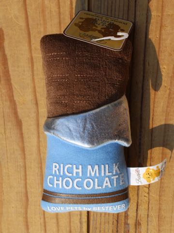 Rich Milk Chocolate リッチミルク板チョコ ■サイズ 15x7x5cm ■価 格 630円(税抜) ベストエバーならではのかわいいぬいぐるみペットトイ。 たくさんの方にご愛用いただいている大人気ペットトイシリーズです。 チョコレートは外側のアルミを少し剥いでめくったデザインがおもしろい! 本物はわんちゃんにあげられないけどこれなら大丈夫。 握ったり噛んだりすると、シャカシャカ、キュッキュッと楽しい音がするのでわんちゃんも大喜び。 バレンタインやお誕生日など、特別な日にワンちゃんへのプ...