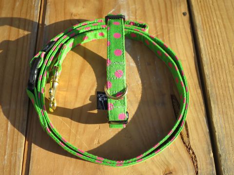 Polka Dot Rose × Apple Green Vintage Fabric(Gold) Collar & Leash Set - XS(超小型犬用) ■カラー Rose × Apple Green ■サイズ Collar:首回り16〜24cm / 幅1cm Leash:長さ115cm / 幅1cm [カフェリード仕様] 手持ちの部分にバックルが付いていてドッグカフェや公園etc.でリードを繋いでおきたい時に便利な仕様になっています。 ■価 格 ¥6,500(税抜) ポルカドット。 水玉模様。 Rose × Apple Green。 ビビットな組み合わせ。 商品お問い合わせ Tel:0...
