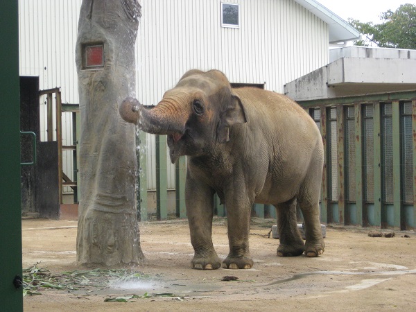 アジア象「ズゼ」の 水飲み と トレーニング・・神戸王子動物園で