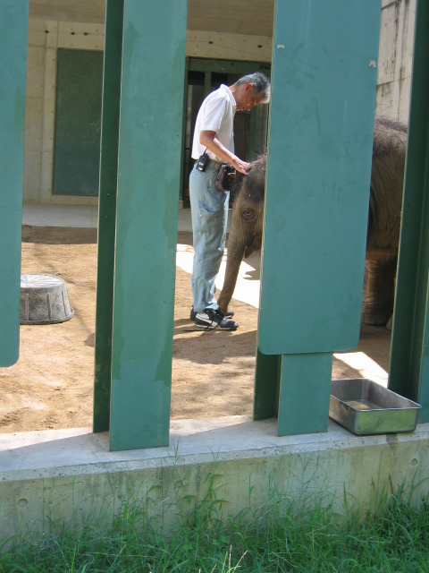 JUGEMテーマ:象   2008年8月31日(日) 神戸市立王子動物園 で子象オウジの公開を見たのは3度目。   オウジはアジア象マックとズゼの2番目の子。 出生時(2007.10.21)の体重が 約154kg だったのが、454kg になっていた。   飼育員さんと運動場(パドック)で遊んだり、水やオヤツを貰ったりのとても可愛いオウジ。 この日は偶然にオウジの「見事な鼻わざ・靴ひもほどき」を見て感嘆した。。。(*'▽'*)わぁ♪   飼育員さんは白い長靴をはいているのですが、スニーカ...
