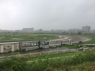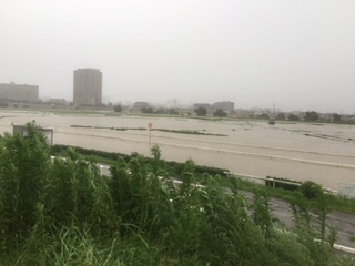 なんですかぁこれはぁぁぁ〜 どんなことになっているのか、わかりますか? 馬場が川になっておりますラチ(柵)部分までなみなみの水 いつもの入り口から入るとそこはすぐに川です 同じ角度から撮った写真朝(左)と夕方(右) ラチがかろうじて顔を出している状態 上流のダムが決壊を防ぐために開けたようです ちょうど競馬開催で最終日のお馬さん達は調教したかったんですが、この状況では無理です 同じ角度で撮った朝(左)と夕方(右)の違い いや...