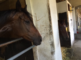 ナデちゃん(ナデシコハート)ちょっとうれしそうです ナデ:お隣さんが出来たのよ タマノちゃん(タマノベレッツァ)がナデちゃんの逆隣りに引っ越しました こちらの馬房の方が若干風当たりが良いんです 馬房が変わったことによって2頭の距離が一層近くなりました こんな感じでお顔がくっつく距離になりました 2頭の仲はなかなかです 2頭:これからが楽しみだわ(左:タマノちゃん、右:ナデちゃん) JUGEMテーマ:馬