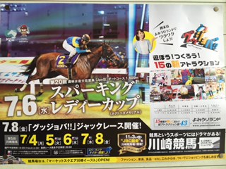 いよいよ川崎開催が始まります梅雨だというのにあんまり雨が降らないような… 今回のポスターは新アトラクションが増えたよみうりランド様へのご案内 いろいろな体験ができます ナデ:お馬さんはいないけどね お馬さんに会いたいときは川崎競馬へ来てくださいね ▼オリジナルポロシャツが当たります スパーキングレディーカップにちなんで女性トークショーが盛りだくさん ▼▲こんなにたくさんいらっしゃいますよ ▼お馬さんとのふれあいやギフト券などのプ...