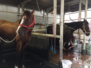 梅雨なんで夜中にむちゃくちゃ雨が降ることもあります エミネちゃん(エミネントフラワー)もうすぐ競馬です ▼ナデちゃん(ナデシコハート)調教頑張って走りました 最終日のウィンちゃん(リバーウィン)&今回お休みのタマノちゃん(タマノベレッツァ) タマノちゃんこれから調教です 調教でコンビを組むのはウィンちゃん ▼調教が終わった2頭 暑くなってきてますので全身洗いです ▼頭の先から尻尾までガッツリ☆洗いました 更に小町ちゃん(バラ...