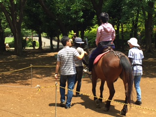 東京障がい者乗馬協会(TADER)の活動が日曜日に世田谷公園で行われました お馬さんはTADERさんの相棒、紅葉台木曽馬牧場からの出張です TADERさんは基本的には、一人の騎乗者につき両サイドに二人、お馬さんを引き馬するリーダーさんの3人体制です 世田谷公園開催の場合は引き馬乗馬(有料)があり、一般の方もお馬さんに騎乗できます お子さんがお馬さんに乗ってきてお父さんが写真をパチリ☆ 休憩時間となりました もぐもぐ栄養補給しなきゃ 多摩川にも来た事のあるお銀ちゃんと茶々さんです ▼この日...